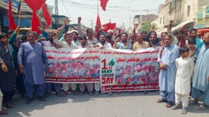 جیکب آباد میں محنت کشوں کے عالمی دن کے موقع پر ریلیاں، محنت کشوں کو حقوق دینے کے مطالبات۔ تفصیلات کے مطابق جیکب آباد میں یکم مئی محنت کشوں کے عالمی دن کے موقع پر مختلف مزدور تنظیموں کی جانب سے ریلیاں نکالی گئی، رکشہ یونین اور ریڑھی یونین کی جانب سے رحیم بخش بروہی، شاہ نواز منجھو، نظر محمد بروہی، ضمیر احمد لہر کی قیادت میں ریلیاں شہید اللہ بخش پارک سے نکالی گئیں، ریلیوں میں شریک محنت کشوں نے ہاتھوں میں بینر اور پلے کارڈ اٹھائے ہوئے تھے جن پر محنت کشوں کے حق میں نعرے درج تھے، ریلیوں کے شرکاء پریس کلب کے سامنے پہنچے جہاں خطاب کرتے ہوئے مقررین نے کہا کہ یکم مئی کو شکاگو کے شہدا نے اپنی جانوں کے نذرانے پیش کئے جس پر انہیں سلام پیش کرتے ہیں، انہوں نے کہا کہ ملک کی معیشت کا پہیہ مزدور کی بدولت چلتا ہے لیکن مزدور دو وقت کی روٹی کے لیے بھی ترس رہا ہے، انہوں نے کہا کہ آئین پاکستان میں مزدوروں کے حقوق درج ہیں لیکن ان پر عملدرآمد نہیں ہورہا اور محنت کشوں کا استحصال کیا جارہا ہے، انہوں نے مطالبہ کیا کہ محنت کشوں کو ان کے بنیادی حقوق فراہم کئے جائیں۔
