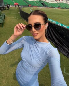 ایک اور دن، ایک اور PSL کا میچ! ایرن ہالینڈ لاہور میں ہیں اور انہوں نے آج 38 ڈگری کی گرمی میں بھی اپنے وٹچری فیشن کے خوبصورت نیلے لباس میں سب کو متاثر کیا۔ گرمی 50 ڈگری محسوس ہو رہی تھی، لیکن ان کا جوش اور اسٹائل ٹھنڈی ہوا کی مانند تھا! ❤️🔥