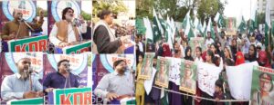 کے ڈی آر سی کے زیر اہتمام بھارتی وزیراعظم نریندر مودی کی جانب سے جارحیت کی دھمکیوں کے خلاف مظاہرے سے چیئرمین ڈاکٹر سلیم حیدر، اشرف جبار قریشی ،اخلاق سونی شمشاد غوری نعیم طاہر و دیگر خطاب کررہے ہیں ۔۔