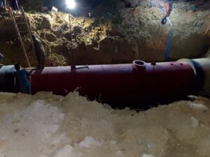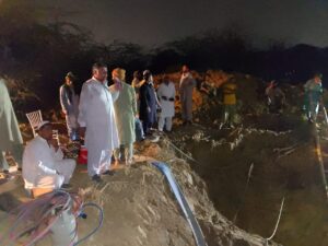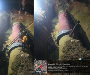 جامعہ کراچی میں واٹر کارپوریشن کی 84 انچ قطر کی متاثرہ لائن مرمتی کام تیزی سے جاری ہے۔