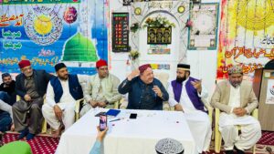 محفل کی سب سے خاص جھلک عالمی شہرت یافتہ نعت خواں شہباز حسین سمی المعروف “پولیس والا” کی پُراثر شرکت تھی، جنہوں نے نعتِ رسول ﷺ کے سحر میں ڈوبے ہوئے انداز میں اپنے کلام سے سامعین کے دلوں کو چھو لیا۔ حاضرین کی پرجوش داد نے محفل کو ایک منفرد روحانی کیفیت عطا کی۔