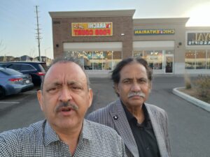 ان کا جائز لے ہی رہے تھے کہ ہمارے سیل فون کی آواز نے اپنی طرف متوجہ کیا۔ ہیلو کہنے پر آگئیں سے سوال ہوا،” تم ابھی گھر سے نکلے تو نہیں ہوں گے؟ ” اس سے پہلےکہ کوئی اور سوال ہوتا ہم نےفورا ہی وضاحت کی “بھائی میں مسی ساگا کے ڈاؤن ٹاون میں گھوم رہا ہوں آپ کے پاس چھ بجے جو پہنچنا ہے ایک گھنٹہ تھا، سوچا مسی ساگا کا ڈاؤن ٹاون دیکھ لیتا ہوں ” جس پر کہا گیا “بس ٹھیک ہے تم پونے چھ بجے آ جاوں میں تیار ہو جاتا ہوں ” ٹیلی فون پر یہ گفتگو ہمارے جوان عمری کے ساتھی مرزا یاسین بیگ کے ساتھ ہو رہی تھی جن کو کراچی چھوڑے 24 برس ہو چکے، لیکن انہوں نے کراچی اور کراچی والوں کو دل سے نہیں چھوڑا۔ یاسین اپنے پرانے دوستوں کے ساتھ رہنا چاتا ہے ان کے دکھ سکھ میں شامل ہونا چاتا ہے تب ہی ایک ایک کے بارے میں پوری معلومات رکھتا ہے۔ دوستوں اور احباب کے امور اور مسائل کی خبر پڑوسی سے پہلے یاسین کو مسسی ساگا میں مل جاتی ہے۔ بقول حسینہ معین ” جناب کینیڈا میں رہتے ہوئے بھی پاکستانی حالات سے مکمل باخبر ہیں” کینیڈا میں میرے احباب و شناسا میں اور بھی بہت سارے لوگ مقیم ہیں، لیکن روانگی سے پندرہ دن پہلے ہی یاسین کا کراچی فون آ گیا، “بھائی کب آ رہے ہو” میں نے شڈول بتایا تو اس کی گفتگو سے ایسا لگا، جیسے میرے کینیڈا آنے میں، مجھ سے زیادہ یاسین کو خوشی ہے۔ “وقت نکال کر آنا یہاں آکر مصروف نہ ہو جانا، بولو کہ وقت ہی نہیں دو تین دن ہمارے ساتھ گزارنے ہیں” وہی گرجدار آواز بے تکلفانہ گفتگو، اور گفتگو میں کشش، پہلے جملے میں ہی اپنائیت کا احساس ہونے لگتا ہے ۔ یاسین بڑا ادیب، براڈکاسٹر، مقرر ہے اور مزاح کا بادشاہ، کئی کتابوں کا مصنف جس کے چانے والوں کی تعداد لاکھوں کروڑوں میں ہے، لیکن وہ دوستوں کا دوست ہے۔ طبیعت میں غرور نہیں، تکبر نہیں، عاجزی اور درویشی ہے۔ جوانی کی طرح آج بھی یاسین کے قلم و زبان سے ایسے شگوفے پھوٹتے ہیں کہ محفل قہقہوں سے زعفران زار ہو جاتی ہے۔ اسی باعث وہ نہ صرف احباب میں بلکہ عوام میں بھی مقبول ہے۔ احمر بشیر نے ڈاؤن ٹاون سے گاڑی کو گھمایا اور ہم گوگل کی مدد سے یاسین کے گھر کی طرف روانہ ہو گئے، پونے چھ بجے گوگل نے اس گھر کے سامنے لا کھڑا کیا جہاں یاسین گزشتہ 20 برس سے مقیم ہے۔ فون کیا کہ گھر کے باہر کھڑے ہیں۔ ہاتھ میں ایک شاپنگ بیگ اٹھائے فورا ہی نکل آیا، گلے ملا ” یار اچھا کیا تم کینیڈا آئے” مجھ سے زیادہ صاحبزادے سے مخاطب ہوا کہ دیکھیں دوسری نسل سے ملاقات ہو رہی ہے۔۔ یاسین نے احمر سے پوچھا “ریج وے پلازہ دیکھا ہے” بولا ہاں ” بس وہاں چلو ” میری طرف مخاطب ہوا ” ہمارے ہاں مسسی ساگا میں کئی فوڈ کورٹس ہیں مگر ریج وے پلازہ عالمی فوڈ کورٹس بن چکا، بلکہ بین الاقوامی فوڈ کا حب ہے۔ ہر ثقافت اور ہر ریجن کا ہر قسم کا کھانہ یہاں ملتا ہے، آپ کو یہاں لگے کا پاکستان میں ہوں” ہم ریج وے پلازہ روانہ ہوئے جہاں آج کی شام یاسین کے ساتھ گزارنی ہے۔ کینیڈا کا موسم کروٹ لے رہا ہے۔ بہار کی آمد آمد ہے یاسین بیگ کی ڈی نما گلی میں داخل ہوئے تھے تو آسمان صاف اور موسم خوشگوار تھا۔ گلی کے دوسرے کونے سے باہر نکل رہے تھے تو آسمان پر اچانک سیاہ اور گھنے بادل امڈ آئے جیسے ہمارا راستہ روکنے والے ہوں۔ خنک و تند ہوائیں فراٹے بھرنے لگیں۔ شام کا وقت تھا اور ہم یاران خضر راہ، کے تعین کردہ ریج وے پلازہ کی طرف رواں دواں تھے ۔ موسم کے اس بدلتے تہور کو دیکھ کر لگا اس سہانی شام کی سلیبریٹ میں کوئی اڑچن آنے والی ہے۔ احمر بشیر نے گاڑی کا ایکسیلیٹر دبایا کہ طوفان سے پہلے منزل تک پہنچا جائے، مگر آسمان نے جیسے گھڑا انڈیل دیا ہو۔ گاڑی رکنے ہی والی تھی کہ طوفان بادباراں پل بھر میں ماشا ہو گیا۔ نہ کیچڑ نہ سیلاب سڑک اور آسمان دونوں صاف۔ لگ بھگ ایک فرلانگ ہی آگئیں گئے ہوں گے کہ ہمارے سامنے کا آسمان قدر صاف اور کالی گھٹائیں دوسری جانب کھسک گئیں ۔ مرزا یاسین بیگ نے گاڑی کے شیشے سے باہر جھانک کر اپنے ملک کی تعریف میں فرمایا ” یہی تو کینیڈا کے موسم کی شان ہے، اس کے بارے میں حتمی کچھ نہیں کہا جا سکتا طوفان 