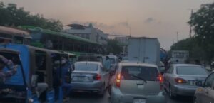سڑک بند ہونے کے باعث ٹریفک جام ہوگیا ،گاڑیوں کی قطاریں لگ گئیں