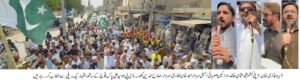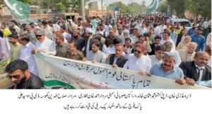 ڈیرہ غا زیخان ( ): بھارتی جارحیت پر ڈیرہ غازی خان میں پاک فوج کے ساتھ اظہار یک جہتی کے لیے عظیم الشان ریلی کا انعقاد کیا گیا جس کی قیادت اراکین صوبائی اسمبلی سردار احمد خان لغاری، سردار صلاح الدین خان کھوسہ، ڈپٹی کمشنر محمد عثمان خالداور ڈی پی او سید علی نے کی۔ اس موقع پر مسلم لیگ ن کی مقامی قیادت میر مرزا تالپور،میاں سلطان محمود ڈاہا،ملک ارشاد،ظفر طاہر مستوئی،عبدالحمید جلبانی سمیت سیاسی سماجی شخصیات، صدر بار عبدالغنی کھوسہ، دیگر وکلاء سول سوسائٹی،ڈویژنل و ضلعی افسران اور زندگی کے ہر شعبہ سے تعلق رکھنے والے مرد و خواتین شریک تھے۔ شرکاء نے قومی پرچم اٹھائے ہوئے تھے۔مقررین نے کہا کہ بھارت ہماری شرافت کو کمزوری نہ سمجھے،بھارتی جارحیت کا منہ توڑ جواب دیا جائے گا۔سیاسی،سفارتی اور ہر پلیٹ فارم سے آواز بلند کی جائے گی۔پوری قوم پاک فوج کے ساتھ کھڑی ہے وطن عزیز کے ایک ایک انچ کا دفاع کیا جائے گا۔شہداء کی قربانیاں رائیگاں نہیں جائیں گی۔شرکاء نے پاکستان زندہ باد،پاک فوج زندہ باد کے فلک شگاف نعرے لگائے. ریلی کے اختتام پر ملک و قوم کی سلامتی کیلئے خصوصی دعا کی گئی۔