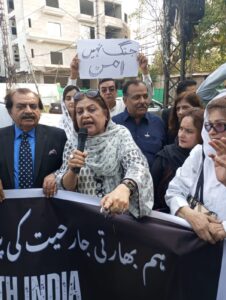 لاہور()برداشت پنجاب کے زیر اہتمام لاہور پریس کلب کے سامنے ہندوستان کی جارحیت کے خلاف احتجاج ،انسانی حقوق کے پاسداران کی شرکت ،اس موقع پر چئیر پرسن برداشت آمنہ الفت کا کہنا تھا کہ بھارت نےپاکستان پر حملہ کرکے اپنی تباہی کا آغاز کردیا ہے ۔ پاکستانی قوم کا بچہ بچہ پاکستان کے دفاع کیلئے اپنی فوج کیساتھ کھڑا ہے ۔ پوری قوم افواج پاکستان کے ساتھ کھڑی ہے۔ ملک کے دفاع کیلئے ہر قربانی دینے کیلئے تیار ہیں