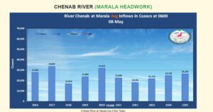 دریاؤں میں پانی کی تازہ صورت حال، ہیڈ مرالہ کے مقام پر پانی کی آمد میں بتدریج اضافہ