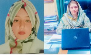 گورنمنٹ ایسوسی ایٹ کالج برائے خواتین سہال، راولپنڈی کی پرنسپل محترمہ سمیرا حمید اور نمایاں کامیابی حاصل کرنے والی طالبہ عریبہ نور۔
