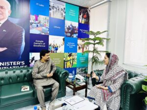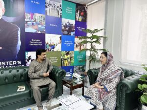 نامور شاعر عمیر علی انجم کی وفاقی وزیر مملکت برائے تعلیم و پیشہ ورانہ تربیت وجیہہ قمر سے ملاقات