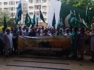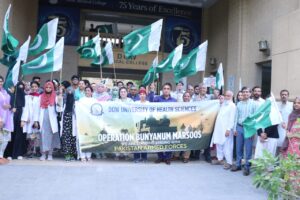 افواج پاکستان نے قوم کا سر فخر سے بلند کر دیا ہے ہمیں اپنی افواج پر ناز ہے ڈاؤ یونیورسٹی سے اساتذہ و طلبہ سمیت تمام اسٹاف آج یوم تشکر منا رہے ہیں
