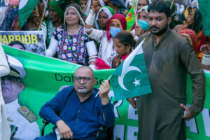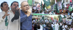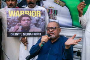 سریندر ولاسائی نے چیئرمین بلاول بھٹو زرداری اور آرمی چیف کی تصاویر اُٹھاکر ریلی کی قیادت کی