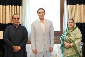 کراچی: پاکستان پیپلزپارٹی کے چیئرمین بلاول بھٹو زرداری اور پی پی پی شعبہ خواتین کی مرکزی صدر فریال تالپور سے پیٹرولیم اینڈ سوشل ڈولپمنٹ کمیٹی گھوٹکی کے چیئرمین عبدالباری خان پتافی نے بلاول ہاؤس میں ملاقات کی جس میں میرپور ماتھیلو کے عوام اور ان کے مسائل کے حل کے حوالے سے بریفنگ دی۔