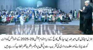 لاہور جنرل اسپتال میں ایم بی بی ایس سیشن 2025–29 کے پہلے سال کے طلباء کے لیے منعقدہ “وائٹ کوٹ اور حلف برداری تقریب” سے خطاب کرتے ہوئے امیر الدین میڈیکل کالج کے پرنسپل پروفیسر ڈاکٹر ایم الفرید ظفر نے کہا کہ سفید کوٹ طب کے پیشے کی حرمت کی علامت ہے۔ یہ صحت کے شعبے سے وابستہ افراد کی شناخت، وقار، علم اور خدمت کی نمائندگی کرتا ہے۔