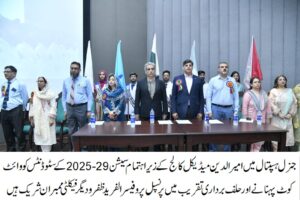پروفیسر حسین احمد خاکان، ڈاکٹر شائستہ مبین اور ڈاکٹر عائشہ قمر نے طلباء سے خطاب کرتے ہوئے کہا کہ وہ اپنے تعلیمی سفر کا آغاز انکساری، استقامت اور ہمدردی کے ساتھ کریں، کیونکہ یہی اوصاف ایک مؤثر اور شفیق معالج کے لیے ضروری ہیں۔