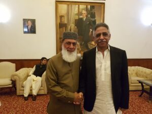 تفصیلات کے مطابق مولانا اختر حیدری نے اسلام اباد میں ہر دل عزیز مسلم لیگی رہنما مصدق ملک سے خصوصی ملاقات کی اس موقع پر مولانا اختر حیدری کے والد الحاج مولانا فت علی حیدری کی زندگی سے جڑے اہم واقعات کی یادیں تازہ ہوئیں جب 1968 میں خانہ کعبہ کا یادگار سفر اور پھر صدر جنرل ضیاء الحق کی جانب سے الحاج مولانا فتح علی حیدری کو خصوصی دعوت کا واقعہ یاد کیا گیا یہاں مولانا افسر حیدری کے والد گرامی نے18 منٹ تک تفصیلی دعا کی