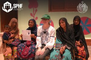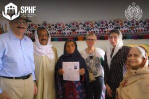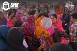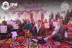 They visited newly constructed houses under the SPHF program in the village of Nazar Muhammad Leghari where land titles were awarded to women.