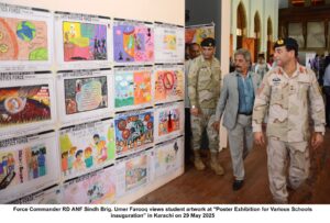 انسداد منشیات فورس (اے این ایف) سندھ کے زیر اہتمام 20ویں پوسٹر مقابلے کی نمائش سادیقین گیلری، فریر ہال کراچی میں منعقد ہوئی، جس کے مہمانِ خصوصی فورس کمانڈر ریجنل ڈائریکٹوریٹ اے این ایف سندھ، بریگیڈیئر عمر فاروق نے شرکت کی۔