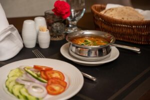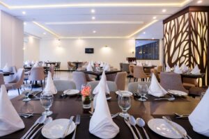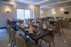 ہوٹل کا جدید ریستوران حلال مقامی پکوان پیش کرتا ہے، جبکہ بوفے ناشتے کا بھی انتظام ہے۔ مہمان آرام دہ ماحول میں مزیدار کھانے سے لطف اندوز ہو سکتے ہیں۔
