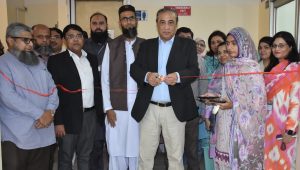 سرسید یونیورسٹی کے چانسلر اکبر علی خان فیتہ کاٹ کر ٹیلنٹ ایکس پروگرام کا افتتاح کر رہے ہیں۔اس موقع پر ڈاکٹر مزمل، اسامہ، یاسرذہین اور دیگر فیکلٹی ممبران بھی موجود ہیں۔