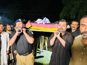 رپورٹ محمد عاشق پٹھان نوڈیرو کے قریب تھانہ کیٹی ممتاز تھانے کی حدود کچے کے گاؤں آگانی میں ڈاکوؤں اور جرائم پیشہ افراد کے ساتھ مقابلے میں شہید ہونے والے پولیس جوان محمد رمضان جروار کی نماز جنازہ پورے سرکاری اعزاز کے ساتھ پولیس ہیڈکوارٹر لاڑکانہ میں ادا کردی گئی، نماز جنازہ میں نماز جنازہ میں ڈی آئی جی لاڑکانہ ناصر آفتاب، ایس ایس پی لاڑکانہ احمد فیصل چودھری، ڈپٹی کمشنر لاڑکانہ ڈاکٹر شرجیل نور چنہ، ایس پی انویسٹیگیشن فلائیٹ لیفٹیننٹ ریٹائرڈ محمد علی، رینجرز کے ڈی ایس آرز، ضلع بھر کے ڈی ایس پیز، سول سوسائٹی کے رہنماؤں، تمام مکتبہ فکر سے تعلق رکھنے والے افراد، شہید کے ورثاء اور عام شہریوں سمیت بڑی تعداد میں پولیس افسران اور جوانوں نے شرکت کی، اس موقع پر وزیر داخلہ سندھ ضیاء الحسن لنجار،