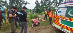 نامعلوم 50 سالہ خاتون کی طاہرہ آباد کالونی بھیرہ کے مقام پر تیرتی نعش کی اطلاع پر ریسکیو 1122 نے بروقت نکل کر THQ ہسپتال بھیرہ منتقل کر دی
