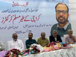 کراچی ( ) آرٹس کونسل آف پاکستان کراچی اسپیشل ایونٹس کمیٹی کی جانب سے سینئر صحافی اور محقق شاہ ولی اللہ جنیدی کی تصنیف ”کراچی کے غیر مسلم کرکٹرز“ کی تقریب رونمائی حسینہ معین ہال میں کی گئی جس کی صدارت سابق ڈائریکٹر قائداعظم اکادمی خواجہ رضی حیدر نے کی جبکہ اظہارِ خیال کرنے والوں میں بین الاقوامی کرکٹ مبصر قمر احمد، سابق کپتان و منیجر پاکستان ٹیم معین خان، سینئر صحافی و تجزیہ کار مظہر عباس، عبدالرشید، اقبال رحمن مانڈویا، فرشید روحانی، اسپورٹس کالم نویس سہیل دانش و مصنف شاہ ولی اللہ جنیدی شامل تھے، تقریب کی نظامت کے فرائض اسپیشل ایونٹس کمیٹی کے چیئرمین محمد اقبال لطیف اور شکیل خان نے انجام دیے، اس موقع پر خواجہ رضی حیدر نے صدارتی خطبے میں کہاکہ برطانوی مصنف نے قائداعظم کی سوانح عمری لکھی جس میں انہوں نے کرکٹ کا تذکرہ کیا اور قائداعظم کی کرکٹ سے دلچسپی ظاہر کی، مولانا محمد علی جوہر اور شوکت علی کو بھی کرکٹ سے لگاﺅ تھا، ”قائد اعظم نے کہا تھا کہ پاکستان میں غیر مسلم اقلیتوں کو تحفظ فراہم کیا جائے گا“جس کے تحت انہیں تحفظ بھی فراہم کیا گیا، میں اتنی شاندار کتاب لکھنے پر شاہ ولی اللہ جنیدی کو مبارکباد پیش کرتا ہوں اور امید کرتا ہوں کہ وہ آئندہ بھی اپنا یہ سفر جاری رکھیں گے، بین الاقوامی کرکٹ مبصر قمر احمد نے کہاکہ کرکٹ کا مذہب سے کبھی تعلق نہیں رہا، 88 میں بھارت سے جو ٹیم انگلستان گئی