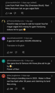 کچھ صارفین کے مطابق یہ گانا 2025 میں زیادہ وائرل ہو رہا ہے، جبکہ بعض نے مزاحیہ تبصرہ کیا کہ ’آ گیا راوی وچ پانی، اب سکون ہے‘۔