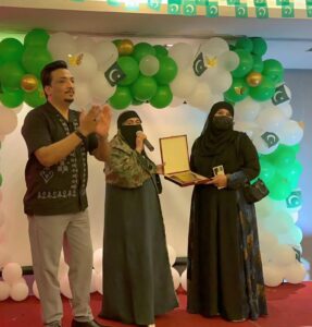 سعودی عرب (رپورٹ سعدیہ خان )کے شہر الخبر منطقہ شرقیہ میں اڈیپٹ کلب سعودی عرب کی بانی سیدہ نمیرہ محسن شیرازی کی جانب سے یوم دفاع پاکستان اور یوم الوطنی سعودی عرب کی شاندار تقریب کا انعقادکیا گیا۔ پاکستان انٹرنیشنل سکول الخبر کے پرنسپل محترم جناب اجمل جمیل صاحب اور محترمہ سینیٹر نگہت مرزا مہمان خصوصی تھے۔رنگارنگ اور علاقائی ملبوسات و زیورات ،لذیذ کھانوں، دستکاری و کھلونوں سے مزین سعودی و پاکستانی تہذیب کی عکاسی کرتی نمائش بھی اس پروگرام کا حصہ تھی۔ تقریب کی میزبانی وائس چئروومن ایڈیپٹ ذنیرہ ذوالنون نے بہترین انداز میں کی۔محترمہ شاہین جاوید کو بہترین صحافی کی اعزازی شیلڈ سے بھی نوازا گیا۔