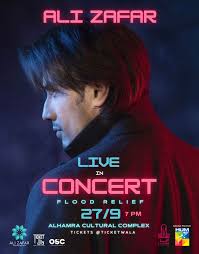 کنسرٹ میں علی ظفر کے ساتھ دیگر ممتاز گلوکار بھی آواز کا جادو جگائیں گے، کنسرٹ سے حاصل رقم سیلاب سے متاثرہ افراد کی بحالی کے لیے لگائی جائے گی