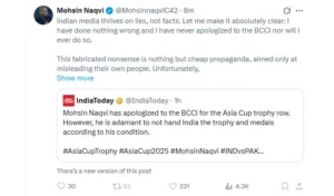 چیئرمین پی سی بی محسن نقوی نے لکھا کہ بھارتی میڈیا کا کام صرف اپنے لوگوں کو بیوقوف بنانا ہے، بھارتی میڈیا غلط اور جھوٹی خبریں چلا رہا ہے۔