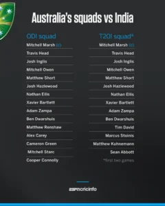 Australia ODI squad vs India