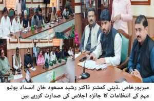 میرپور خاص (. ) ڈپٹی کمشنر ڈاکٹر رشید مسعود خان نے کہا ہے کہ پولیو وائرس سے بچاؤ کےلیے ایک قومی فریضہ کے ساتھ سنجیدگی سے مل کر کام کیا جائے اس ضمن میں تمام مطلوبہ انتظامات کو یقینی بنایا جائے اور مائکرو پلان پر نظر ثانی کی جائے. یہ ہدایت انہوں نے محکمہ صحت کے افسران کو کمشنر کمیٹی ہال میں 13 سے 17 اکتوبر 2025 تک ہونے والی انسداد پولیو مہم کے انتظامات کا جائزہ لینے کے متعلق اجلاس کی صدارت کرتے ہوئے دی. ڈپٹی کمشنر نے محکمہ صحت کے افسران کو ہدایت کی کہ پولیو مہم میں قریبی اضلاع کے داخلی اور خارجی راستوں پر بھی نظر رکھی جائے اور باہر سے آنے والے بچوں کو بھی پولیو سے بچاؤ کے قطرے پلائیں. ڈپٹی کمشنر نے محکمہ صحت کے افسران کو سختی سے ہدایت کی کہ جن یونین کونسلز کی پولیو مہم کے دوران کارکردگی بہتر نہیں ہے ان کے تعلقہ فوکل پرسن کو پابند کیا جائے کے وہ پولیو ٹیموں کے کاموں کی سختی سے نگرانی کرےاس ضمن میں کسی بھی قسم کی کوتاہی نہ برتی جائے. اس موقع پر ڈسٹرکٹ ہیلتھ آفیسر ڈاکٹر سندیپ کمار نے بتایا کہ محکمہ صحت کی جانب سے اس مرتبہ تمام پہلوؤں کو مد نظر رکھتے ہوئے مائکرو پلان بنایا گیا ہے اور اس ضمن میں انتظامات کو یقینی بنایا جا رہا ہے اور بتایا کہ پولیو مہم کارکردگی کو بہتر بنانے اور پولیو سے بچاؤ کے قطروں کی اہمیت و افادیت کے متعلق ویکسنیٹرز اور تعلقہ فوکل پرسن کو تربیت بھی دی گئی ہے. اجلاس میں ایڈیشنل ڈپٹی کمشنر ٹو فیصل علی سومرو، تمام تحصیلوں کے اسسٹنٹ کمشنرز، ایڈیشنل ڈائریکٹر لوکل گورنمنٹ عبدالوہاب عباسی، ڈسٹرکٹ پولیو کنٹرول پروگرام کے فوکل پرسن ڈاکٹر جمشید خانزادہ ، کمیونیکیشن آفیسر منیر ابڑو، ڈبلیو ایچ او کی ڈاکٹر غلام زینب، ایس پی ہیڈ کوارٹر فضل حق چانڈیو ، ڈپٹی ڈسٹرکٹ ایجوکیشن آفیسر سیکنڈری اسکولز علی خان ناریجو، تعلقہ فوکل پرسن اور دیگر متعلقہ افسران موجود تھے.