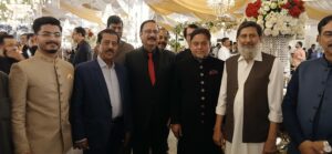 کراچی واٹر کارپوریشن کے سینیئر افسر سید محمد اعجاز کی صاحبزادی سیدہ منیبہ کی شادی کی تقریب کے موقع پر رکن قومی اسمبلی کرنل ریٹائرڈ اسد نیازی ارکان سندھ اسمبلی محیط انور عامر صدیقی ایکس ایم پی اے