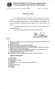 سندھ بورڈ آف ٹیکنیکل ایجوکیشن نے ڈی اے ای فرسٹ ایئر شروع کے دو پرچے ملتوی کر دیے! ناظم امتحانات سید اختر علی شاہ