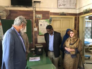 میرپور خاص. ڈویزنل کمشنر فیصل احمد عقیلی نے ماں اور بچے کی صحت مرکز پرانی میرپور کا دورہ کرکے پولیو مہم کے کام کا جائزہ لیا.