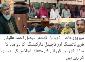 میرپورخاص کے پڑھے لکھے خواہشمند نوجوانوں کے لیے بہت جلد دو ماہ کا ماڈل فری لانسنگ وڈجیٹل مارکیٹنگ کورس کروایا جائے گا تاکہ وہ بھی جدید دنیا کے ساتھ شانہ بشانہ چل سکیں اور وہ اپنا روزگار خود کما سکیں. یہ بات کمشنر فیصل احمد عقیلی نے کمشنر کمیٹی ہال میں میرپورخاص کے پڑھے لکھے خواہشمند نوجوانوں کو دو ماہ کا ماڈل فری لانسنگ کے وڈجیٹل مارکیٹنگ کورس کرانے کے متعلق اجلاس کی صدارت کرتے ہوئے کہی. کمشنر نے کہا آج کی جدید دنیاسے پڑھے لکھے نوجوانوں کو منسلک کرنا بہت ضروری ہے تاکہ وہ جدید دنیا میں شامل ہوکر خود کو مقابلے کے میدان کے لیے تیار سکیں اور ایک پڑھے لکھے معاشرے کو پروان چڑھا سکیں. انہوں نے کہا کہ فری لانسنگ و ڈجیٹل مارکیٹنگ کورس کروانے کے لیے محکمہ اسٹیوٹا سندھ مکمل طور پر اپنا تعاون فراہم کرے گا جبکہ میرپورخاص کے دیگر ادارے پبلک اسکول، آئی بی اے سکھر کئمپس میرپورخاص ، یونیورسٹی آف میرپورخاص اور پیپلز اسکول اور تکنیکی ماہرین بھی مذکورہ کورس کے حوالے سے تربیت فراہم کریں گے. اس ضمن میں تمام اداروں سے مشاورت کے بعد مطلوبہ پہلوؤں کو مد نظر رکھتے ہوئے اس پروگرام کو حتمی شکل دی جا رہی ہے تاکہ ایک بہتر اور جامع حکمت عملی کے ساتھ اس پروگرام کے مطلوبہ مثبت ثمرات مل سکیں. اجلاس میں تمام اداروں کی جانب سے اس پروگرام کو ڈویژنل انتظامیہ کی جانب سے نوجوانوں کے لیے مثبت اقدام قرار دیتے ہوئے کمشنر فیصل احمد عقیلی کی کاوشوں کو سراہا گیا اور اپنی اپنی جانب سے ہر ممکن تعاون کرنے کا یقین دلایا. اجلاس میں ایڈیشنل کمشنر ٹو بشارت حسین ، ایڈیشنل ڈپٹی کمشنر ون محمد علی بلوچ، ڈائریکٹر آئی بی اے سکھر میرپورخاص کئمپس ڈاکٹر عاصم سمیجو، پرنسپل پبلک اسکول پروفیسر عمران لاڑک ، پیپلز اسکول کی آئی ٹی انچارج مس ہما اور متعلقہ افسران نے شرکت کی.