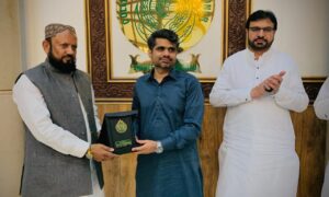 نواب شاھ: ڈپٹی کمشنر شہید بینظیر آباد عبدالصمد نظاماني نے نیشنل ڈس ایبلٹی اینڈ ڈوالپمنٹ فورم (این ڈی ایف) پاکستان کے صدر عابد لاشاری کو پاکستان کے اعلیٰ سول ایوارڈ تمغۂ امتیاز حاصل کرنے پر خراجِ تحسین پیش کیا۔