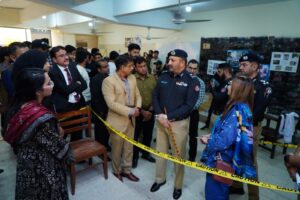 پولیس چیف نے کرمنالوجی سے متعلق مختلف شعبہ جات کا معائنہ کیا، جہاں طلبہ و طالبات نے جرائم شناسی کے موضوعات پر اپنے تحقیقی اور تخلیقی منصوبے پیش کیے۔