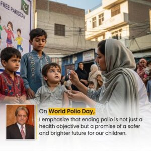 On World Polio Day, I emphasize that ending polio is not just a health objective but a promise of a safer and brighter future for our children. I encourage parents, caregivers, and community leaders to continue supporting vaccination efforts. With collective effort and care, Pakistan can achieve a future free from polio. Salute to all polio workers and everyone contributing to this national mission.