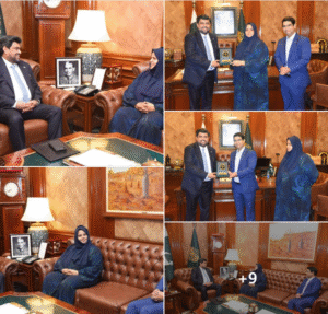 گورنر سندھ کامران خان ٹیسوری سے شیخہ لطیفہ محمد کی مشیر و AFAQ گروپ دبئی کی پارٹنر عائشہ اے۔ سید کی ملاقات