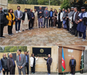 باکو میں پاکستانی سفارتخانے کے دورے کے دوران صحافیوں کے وفد نے پاکستان کے سفیر جناب قاسم محی الدین سے ملاقات کی اور گروپ فوٹو لیا۔
