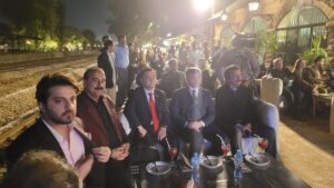 گزشتہ روز وفاقی وزیر ریلوے جناب محمد حنیف عباسی صاحب نے گولڑہ ریلوے اسٹیشن پر اپنے دوست احباب کے اعزاز میں عشائیہ کا اہتمام کیا جس میں *جناب زمرد خان صاحب ہلال امتیاز* نے شرکت کی۔