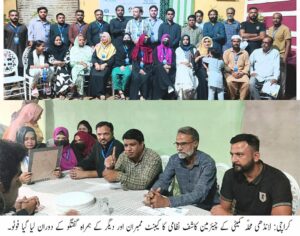 ان خیالات کا اظہار انہوں نے لانڈھی محلّہ کمیٹی کے کابینہ ممبران اور اسٹرانگ ورکنگ کمیٹی کے نوجوانوں سے گفتگو کے دوران کیا۔