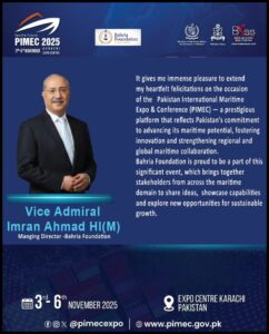 پاکستان انٹرنیشنل میری ٹائم ایکسپو اینڈ کانفرنس کے موقع پر بحریہ فاؤنڈیشن کے مینجنگ ڈائریکٹر عمران احمد ہلال امتیاز ملٹری کا خصوصی پیغام ۔