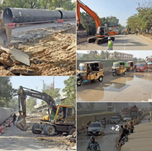 کراچی یونیورسٹی روڈ پر کے فور منصوبے کیلئے پانی کی نئی لائنیں ڈالنے کا کام شروع، ترقیاتی کام پچاس روز تک جاری رہے گا۔
