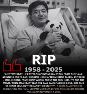 ہانگ کانگ کے مشہور اداکار اور ایکشن ہیرو جیکی چن کی موت کی خبریں ایک بار پھر سوشل میڈیا پر گردش کرنے لگیں، جس نے مداحوں کو شدید پریشانی میں مبتلا کر دیا۔