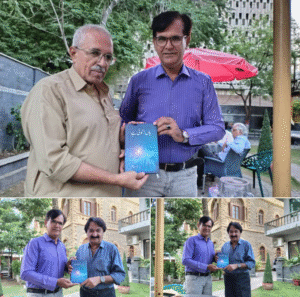 نوجوانوں کے پسندیدہ شاعر کامران مغل اپنا تازہ مجموعہ کلام ‘ہاں کوئی ہے”معروف صحافی رہنما خورشید عباسی اور مجھے کراچی پریس کلب میں پیش کرتے ہوے۔