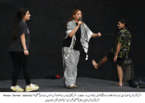فلسطینی ڈانسر Rawan Sameer salamahکا ”فری فلسطین“ کا نعرہ ،کوفیہ پہن کر فلسطین کا روایتی رقص ”دبکہ“ بھی پیش کیا
