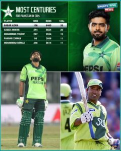بابر اعظم انضمام الحق اور محمد حفیظ کا لنکن ٹیم کے خلاف سنچریوں کا ریکارڈ بھی برابر کرچکے ہیں، سری لنکا کے خلاف پاکستان کی طرف سے سب سے زیادہ سنچریوں کا ریکارڈ سعید انور کے پاس ہے، انہوں نے 52 میچز میں 7 بار سو رنز اسکور کر رکھے ہیں۔