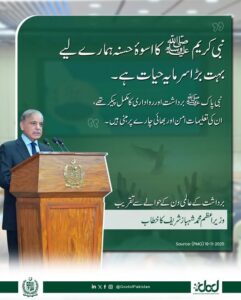 “نبی کریمﷺ کا اسوۂ حسنہ ہمارے لیے بہت بڑا سرمایہ حیات ہے۔ طائف میں مخالفین نے پتھر برسائے لیکن جواب میں نبی کریم ﷺنے جو ارشاد فرمایا وہ قیامت تک محفوظ رہے گا۔ وہ ایک ایسا پیغام ہے جس سے تحمل اور برداشت کو فروغ ملتا ہے۔ نبی پاک ﷺبرداشت اور رواداری کا مکمل پیکر تھے۔ ان کی تعلیمات امن اور بھائی چارے پر مبنی ہیں۔ صلح حدیبیہ بھی اسی طرح کی ایک عظیم مثال ہے۔ آج دوبارہ وقت آ گیا ہے کہ ہم اسلامی تعلیمات کو فروغ دیں، تمام مذاہب اور حضرت عیسی علیہ السلام کی تعلیمات امن، بھائی چارے اور باہمی تعلقات کو فروغ دینے کا درس دیتی ہیں۔ تحمل اور برداشت کی اقدار کو اگر ہم فروغ دیں تو پاکستان کا معاشرہ دوبارہ اپنے پاؤں پر کھڑا ہوگا۔ اللہ تعالیٰ پاکستان کو ایک عظیم ملک بنائے جس میں تمام مکاتب فکر اور تمام مذاہب کے لوگ امن اور چین کی زندگی بسر کریں۔ آئیے آج ہم اس کا عہد کریں اور عملی میدان میں عملی ثبوت دیں۔”