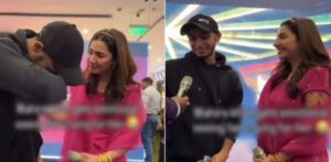 اس دوران مائیک پر موجود شخص نے آبدیدہ نوجوان کو مشورہ دیا کہ ’شیر بنو شیر‘۔ اس کے بعد اداکارہ نے نوجوان کو بولا کہ میں اور تم ملکر ڈانس کریں گے۔